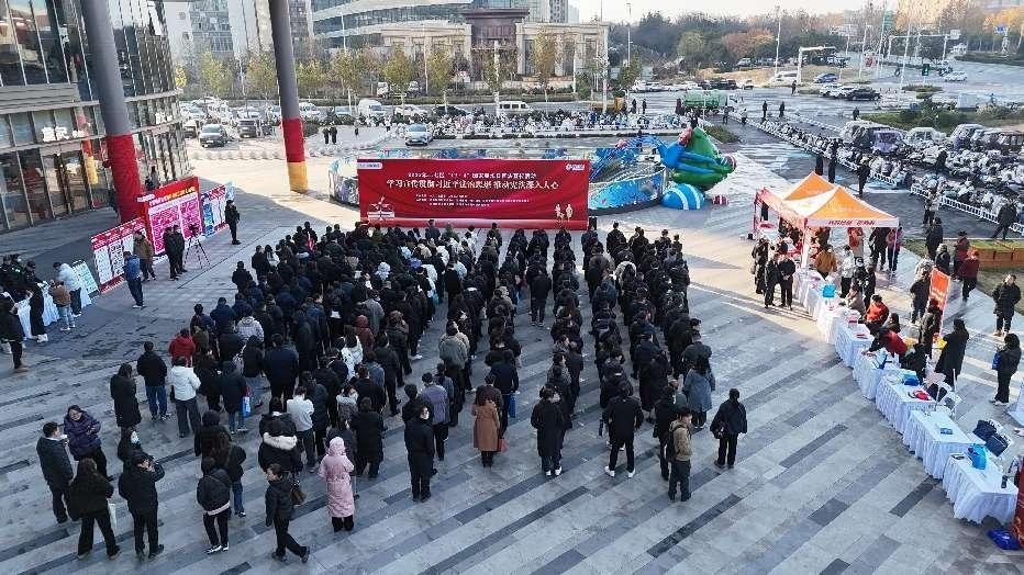 为深入学习宣传贯彻习近平法治思想,让宪法精神深入人心,2025年12月4日上午,二七区在金水源街道嵩南印象城及辖区10个分会场同步开展“12·4”国家宪法日普法宣传活动。活动由中共二七区委、二七区人民政府主办,河南体彩郑西分中心、郑州移动二七分公司、郑州市律师协会二七区律师工作委员会、河南轻工业职业学院、郑州市白庙强制隔离戒毒所协办。活动现场人气高涨,300余名专业律师、100余名执法监督员、100余名司法行政工作人员及100名社区志愿者和学生志愿者组成的600余人普法队伍整齐亮相,以专业力量和饱满热情,为群众送上了一场法治“盛宴”。