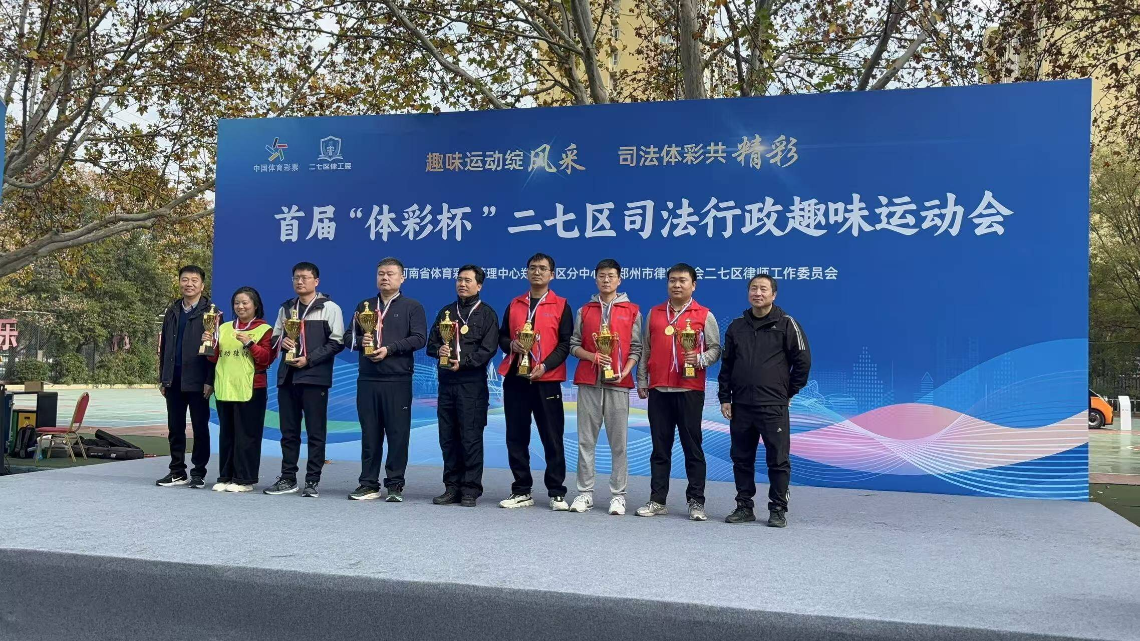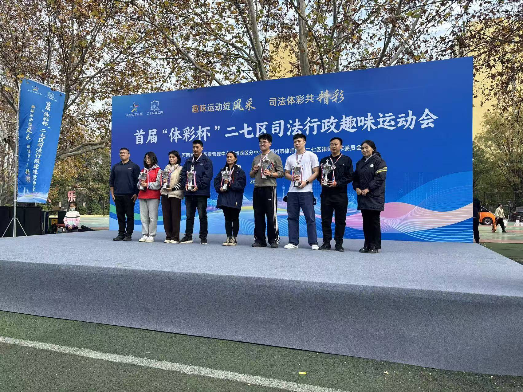 热血点燃赛场,激情绽放活力。11月15日上午,首届“体彩杯”二七区司法行政+河南体彩趣味运动会在二七区长江东路小学隆重举行。本次运动会由郑州市律师协会二七区律师工作委员会主办,河南省体育彩票管理中心郑州西区分中心协办、郑州市二七区司法局代表、郑州市公安局二七分局代表、郑州市二七区人民法院、辖区律师事务所代表、100名体彩从业人员代表及行政执法监督员代表共同参与,近700名参与者齐聚赛场,以运动之名凝聚法治力量。