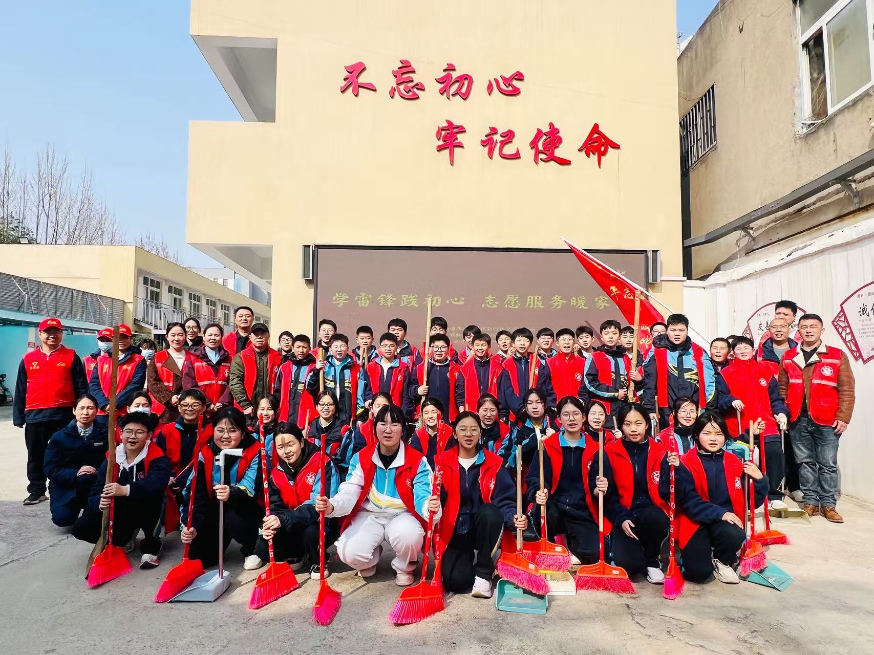 启动仪式在社区院内隆重举行。主持人介绍活动分为“清洁家园”和“爱心帮扶”两支志愿队伍,同时进行志愿服务。社区负责人杨书记在启动仪式致辞中说道:“雷锋精神是宝贵的精神财富,需要代代传承。”书记强调完安全纪律,宣布活动正式开始。随后,志愿者们以饱满的热情投入服务。